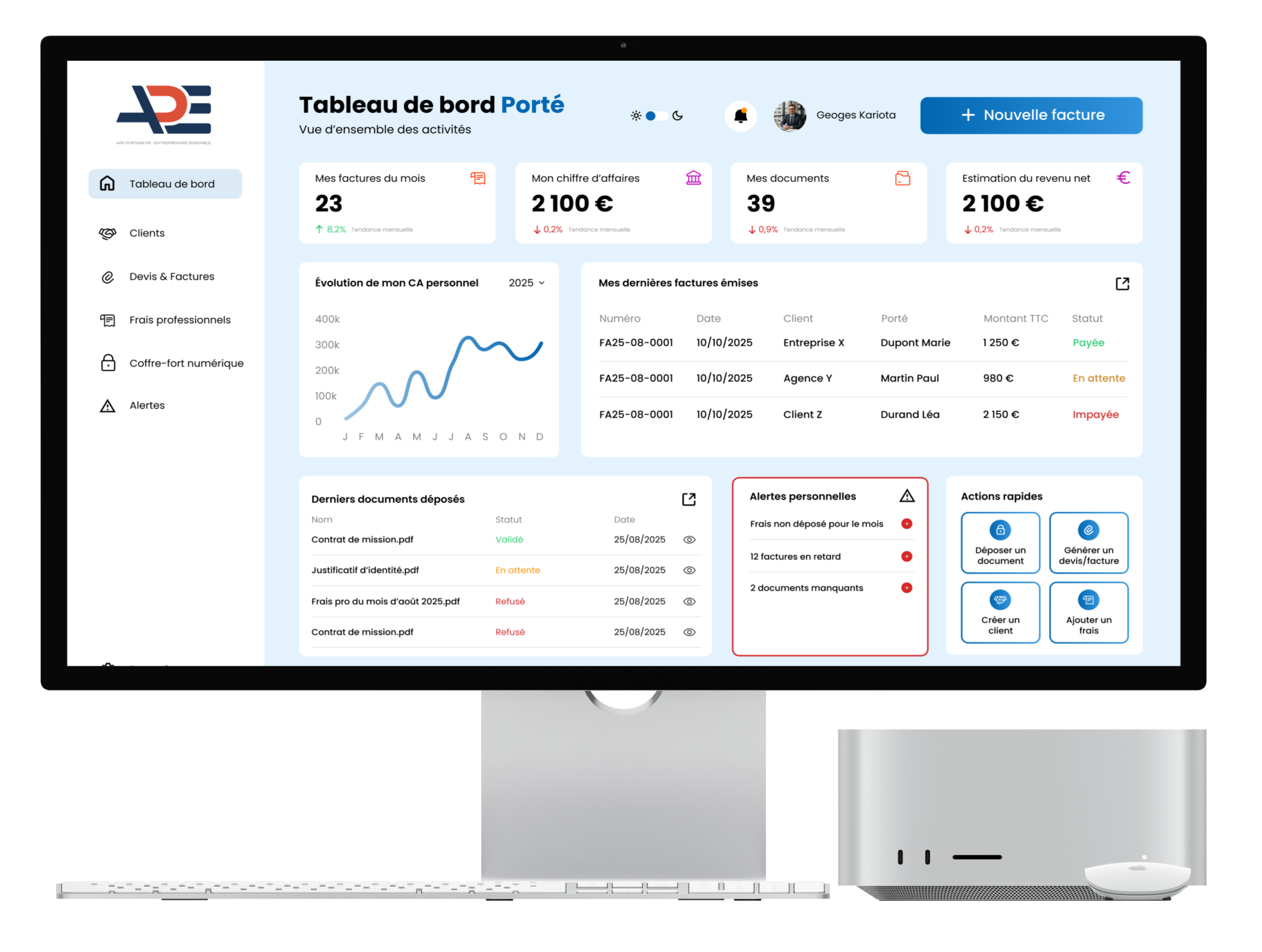 💼 Gestion des devis et factures : créez, envoyez et archivez vos documents en un clic.
